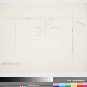 South of Washington St. and west of Hoover St., showing structure, vegetation, distances; color highlighting. Surveyed at the request of Joseph Kurtz & Herman Heinsch. Alt title supplied by cataloger.