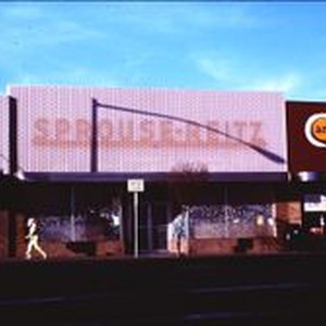 Slides, color transparency: The empty Sprouse-Reitz store front and Analy Rexall Drug Store on North Main Street Sebastopol 1977
