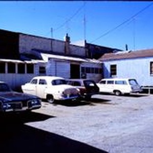 Slides, Kodachrome color transparency; Back of buildings on Main. Schmidt's Stationary store is the building to the left with windows.