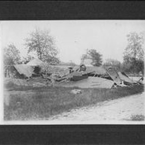 Photo--black and white: The Huntley apple dryer in Sebastopol after the 1906 San Francisco earthquake. The Huntley property encluded the area in Sebastopol from Pleasant Hill on the west, Valentine on the north, Jewell on the south.