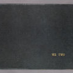 Bound in textured black leather. The title, "We Two" is embossed in gold lettering in the lower right corner of cover. The number "7" is affixed to the top of spine with glue. Images are studio portraits and snapshots of Jack and Charmian London during their travels, riding horses, and on Beauty Ranch. Many are enlargements of images located in other albums in collection. Moderate wear and scuffing over surface with more substantial wear along edges. After page 80, it appears that several pages were removed from album. Two pages, possibly pulled from the group that were removed, are loose in the back of album, and have serious damage around edges.