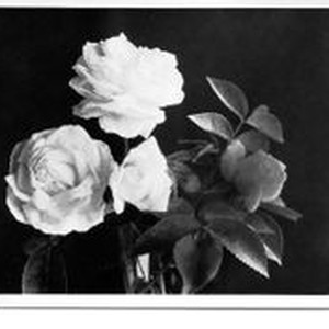 Photo--black and white: Unnamed Burbank rose pictured in a vase. Identified only as 'KK-7'. Circa 1928