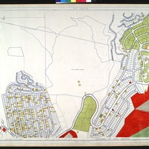 WPA Land use survey map for the City of Los Angeles, book 7 (Topanga Canyon to Hollywood District), sheet 30. Includes: [Title page and] legend [for Book] no. VII Composite index to Land use map books [for Book 7]. Land use survey - City of Los Angeles. Department of City Planning. These maps were prepared with the assistance of the Works Progress Administration project no. 665-07-G-226 through 1939 to 1940. The land use data contained herein was compiled from a survey made with the assistance of the Civil Works Administration project no. 642, State Emergency Relief Administration project nos. 1-F2-318 and 1-F2-318A and Works Progress Administration project nos. 65-3-4377, 1101-2011 and 465-03-3-106. This survey functioned from Dec. 18, 1933 to May 8, 1939 and covers approximately 460 square miles within the boundary of the City of Los Angeles. It includes 347 colored drawings bound in 10 volumes of which this is no. VII. The land use survey was supervised by the Zoning Engineer. The land use maps were supervised by the Illustrative Planning Engineer for the Sponsoring Department.