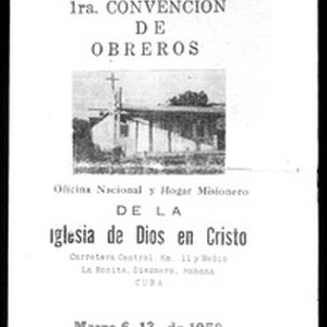 1ra Convencion de Obreros, Oficina Nacional y Hogár Misionero de la Iglesia de Dios en cristo, souvenir booklet, Havana, Cuba, 1958 March 6-13. [Description English/roman)]