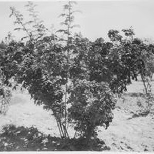 Photo, black and white: Sebastopol roses-large bush identified on back and "Seb Rose A-1 # 2 & 3." Circa 1930.