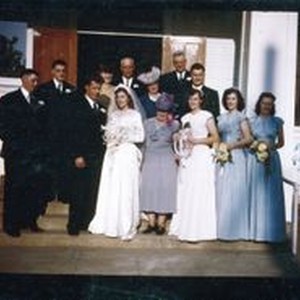 Photo, color: Wedding photo of Betty Hallberg and George Jewell 1947.