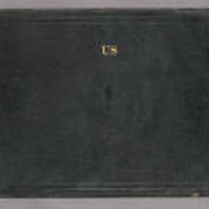 Bound in textured black leather. The title "Us," is embossed in the upper center of cover in gold lettering. A fleur de lis graphic element is embossed in center of cover below title. The number "6" is affixed to the top of spine with glue. Images are of Jack and Charmian London in solo portraits and together throughout their marriage. Heavy wear and scuffing over surface. Edges are frayed on all sides. Cover material is worn away at top and bottom of spine. Some pages have been torn from album or trimmed. Most of these images are duplicated in multiple albums throughout the collection. Several album pages between 28 and 29 have been torn out.