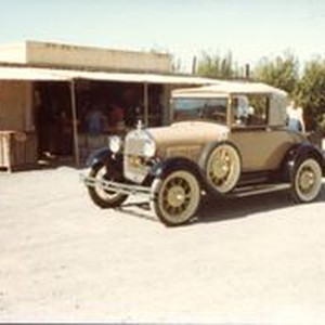 Vintage cars visit the Hallberg Apple Farm roadside stand, October, 1982