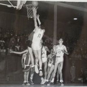 Photo--Black and white: Analy High School basketball B team of 1949-50. Analy Tigers vs Santa Rosa. Analy 18--Santa Rosa 24