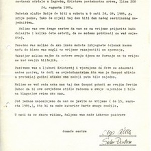 Invitation to a women's meeting in the Pentecostal chruch in Zagreb, Croatia on August 24, 1985. [Description English/roman)] Pozivnica na jednodnevni ženski sastanak u pentekostalnoj crkvi u Zagrebu u Hrvatskoj, 24. kolovoza 1985. godine. [Description (original non-English/roman language/script)]