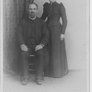 Photo -black and white, cabinet card: The Reverend and Mrs. W. A Johns 1889. Johns was the Methodist pastor at Occidental, CA. Photo: J. W. Baker, 18 3rd St, San Francisco, Cal.