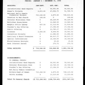Texas Southwest financial report, Church of God in Christ, Texas, 1994 January 1 - December 31. [Description English/roman)]