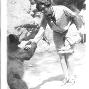 Photo--black and white: Bunni Cornelia E. Myers (1906-2001) with bear cub--about 1925. Bunni was a longtime Sebastopol resident and was married to Sebastopol Mayor George Streckfus.