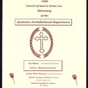 Church of God in Christ directory of assistant jurisdictional supervisors, 1996. [Description English/roman)]