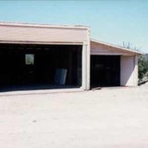 Photo--color: Don and Marcia Hallberg's Fruit Stand 1975 on Gravenstein Highway North. The stand was made from an old garage. Don and his daughter Donna built the door to the stand. The Hallbergs sold apple products at their stand.