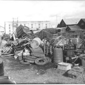 A large pile of scrap metal is shown near the old Speas Mfg buildings in Sebastopol during a World War II American Legion Scrap Drive November 14, 1942. Photo by James H. Cruse, brother of Mary Evelyn Panttaja.