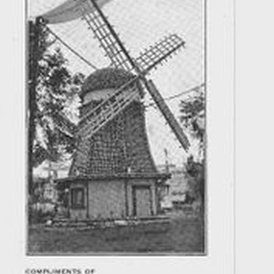 Postcard--black and white: A 1912 advertisement postcard for the Gravenstein Apple Show exhibit from the Sebastopol Chamber of Commerce. The postcard shows a picture of the windmill exhibit from the farm of D. U. Toffelmier in Sebastopol. The verso lists benefits of the town of Sebastopol.