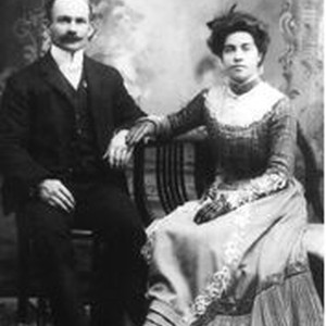 Photo--hand colored: Wedding photo of William and Mabel Huntley Duer married November 24, 1902. Both Duer's are seated with Mrs. Duer in mauve victorial dress. Photographed by E. J. Briggs, Santa Rosa and taken on September 21, 1902. Mabel's mother was a Dutton. Evelyn McClure has negative of Range family pic. Second photo is of handwritten Duer family tree which include the following surnames: Briggs, E.J. Dutton Abbott Morehouse Bell Mason Huntley Strout