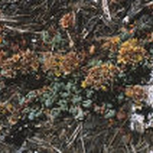 Oregon stonecrop growing on a debris strewn grown at the summit of Blackcap Mountain in Fresno County. The summit is at 11,559 feet.