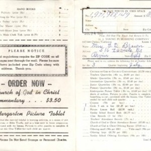Order Form (C.D. Brown) requesting Sunday School Literature from D.J. Young Publishing Company, 1970 July 3. [Description English/roman)]