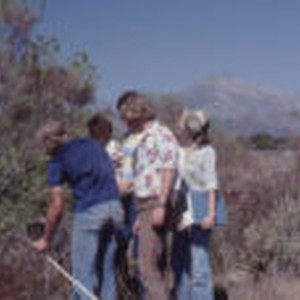 Lab II students working on project at Bernard Field Station. Teaching assistant is Dierdre Kahl.