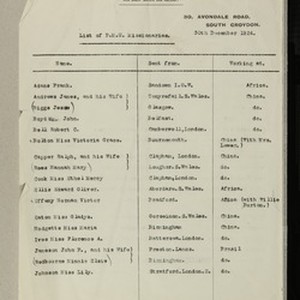 3 page list of PMU missionaries stating name, place sent from and mission field location 5 page list of early AOG HMRC missionarie 1 page of home correspondence index. [Description English/roman)]