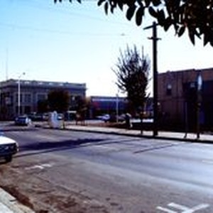 Slide, color transparency: The corner of Main Street at Bodega Avenue looking east. 1971