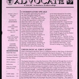 Advocate, vol. 3, no. 2 (2005 May-June). COGIC (Church of God in Christ) scholars fellowship. [Description English/roman)]