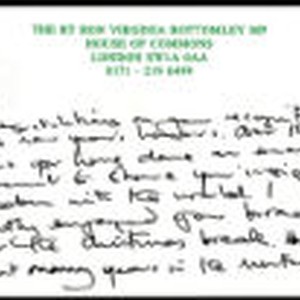 Card letter from the RT HON Virginia Bottomley MP to Charles Handy congratulating Handy on his recognition in the New Year's Honours. Bottomley states that he greatly enjoyed Handy's broadcasting over the Christmas break. He proceeds to remark that he recognized Handy's themes introduced into many impoverished U.K. communities.