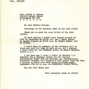 A letter by Ludvik Üllen to Alfred F. Missen about his traveling plans to a conference in London. [Description English/roman)] Pismo Ludvika Üllen Alfredu F. Missenu o svojim planovima putovanja na konferenciju u London. [Description (original non-English/roman language/script)]