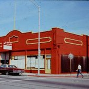 Print, color: Joe's Budget Store on South Main Street at the corner of S Main and Burnett Streets in Sebastopol. Circa 1970s. The building was built circa 1925 and was occupied previously by a horse & buggy shop and auto garage and was torn down in 1979.