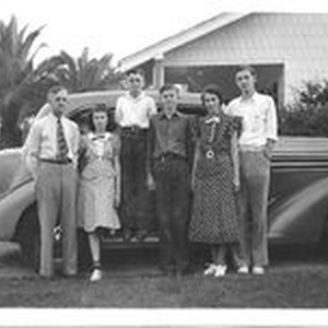 Photo, black and white: The Steiner family: Wesley E. (father)., Barbara, Billy (Willaim Kenneth) Wesley, Anne (mother) and Edwin H. June 1937 KINGWELL/JONAS/SMITH