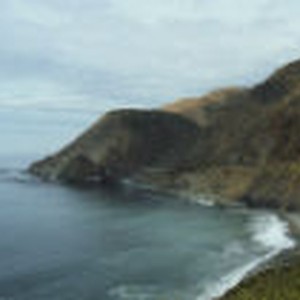 The Pacific Ocean is calm as it meets the rugged shore at Big Sur.