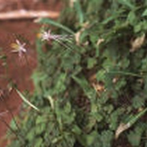 Light purple columbines and a bog orchid growing in a cave seep at Betatakin, the cliff dwellings at Navajo National Monument.