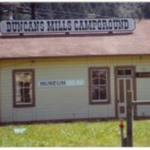 Photo--color: Duncans Mills--duncans Mills Campground building with Museum sign.