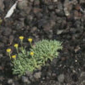 Small bush of yellow flowers grows out of rock at Wizard Island crater.