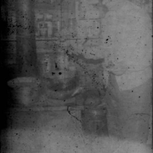 Image / Unidentified woman (Peters relative?) standing next to a wood stove