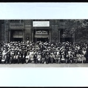 Photograph of a very large group of women at the Women's International Convention, Wilborn Temple Church of God in Christ, 121 Jay Street, Albany, New York, [s.d.]. [Description English/roman)]