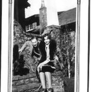 Photo--black and white: Volney T. Ballou (1899-1985) and Bunni Cornelia Myers Ballou on the front steps of the Myers house on Bodega Avenue in Sebastopol. Ballou and Myers were married in 1927.