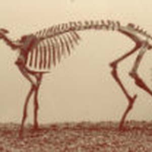 A skeleton of an extinct animal resembling the modern horse that lived during the Eocene epoch.
