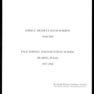 Research project photographs compiled by Glenda Williams Goodson, mostly from a photograph album with captions, "Emma F. Bradley Davis Barron and the Page Normal and Industrial School, Hearne, Texas, 1927-1942", [s.d.]. [Description English/roman)]