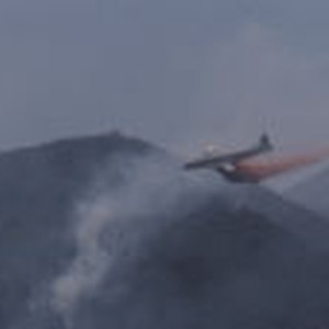A bomber aircraft attempts to put out a fire in San Antonio Canyon.