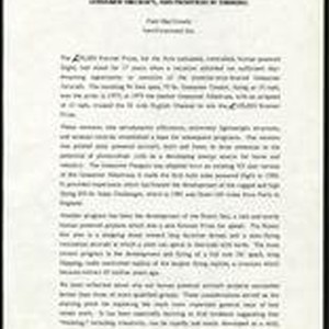 1985 June 7. Part of: Paul B. MacCready Papers ca. 1930-2002. Series 4: Writings and publications; Subseries 1: Writings; Box 7, Folder 3