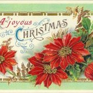 Postcard--color print: Christmas message. Poinsettia. Handwritten message on back.