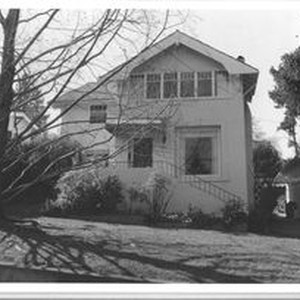 Photo, black and white: Sebastopol house at 656 Vine Avenue a bungalow built about 1911 in the Laguna Vista Addition. Known as the Starr House. House photographed in 1993 by Evelyn McClure for her book "Sebastopol, California : History, Homes and People."