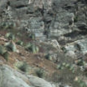 Two bighorn sheep rams and one kid in the narrows of the East Fork of the river.
