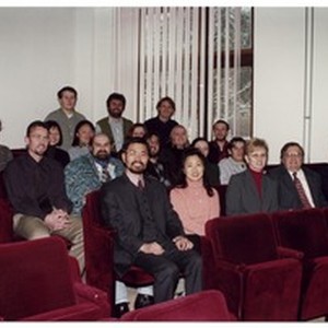 Group photograph of the part of ETS' faculty and staff with rector Peter Kuzmič, his wife Vlasta, and the dean Mihael Kuzmič sitting in the first row. [Description English/roman)] Grupna fotografija osoblja i profesora ETF-a s rektorom Petrom Kuzmičem, njegovom suprugom Vlastom i tadašnjim dekanom, Mihaelom Kuzmičem, u prvom redu. [Description (original non-English/roman language/script)]