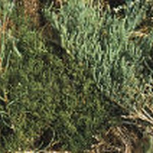 Two species from the group Salicornia growing side by side. The saltwort is growing predominantly on the left and the glasswort mainly on the right of the image.