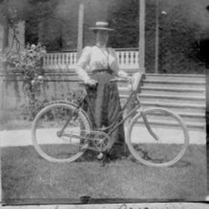 Photo--black and white: Susie (Susan) Alten (1869-1920) daughter of Wendell and Martha Anna Alten. Susie stands in front of the Otis Allen residence in Santa Rosa. Susie is buried in Sebastopol Memorial Lawn (previously Evergreen Lawn Cemetery).