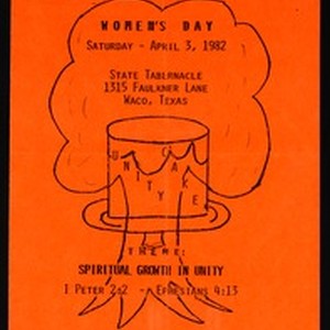 Women's day program, "Spiritual growth in unity", Ministers and workers convocation, Texas southwest, Church of God in Christ, State Tabernacle, Waco, Texas, 1982 April 3. [Description English/roman)]